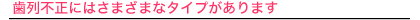 歯並びの凸凹。歯並びの全体の形の不具合。上下の歯のかみ合わせの問題。